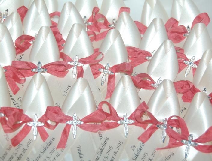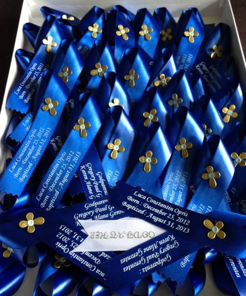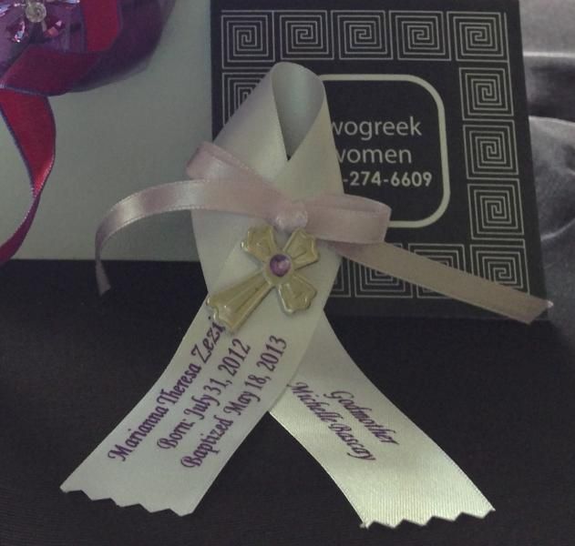 Matyrika are small lapel pins worn by guests to show they have witnessed the Greek Orthodox baptismal ceremony. They traditionally have the baby's name, birthdate, baptismal date and name of the Godparents custom printed. Unpersonalized are available as well for last minute ceremonies.
